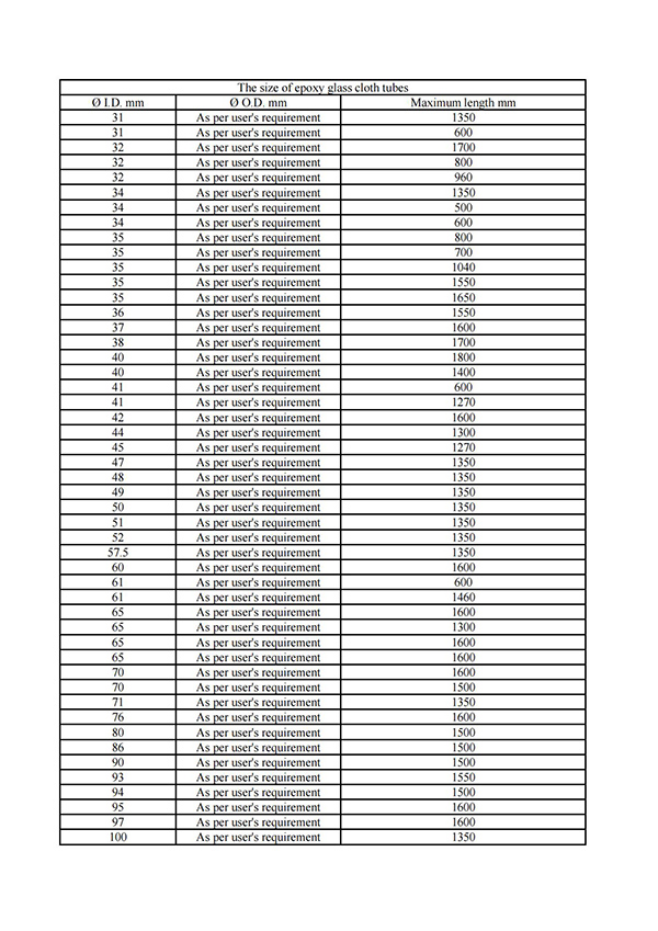 Dimension For Epoxy Glass Cloth Rods